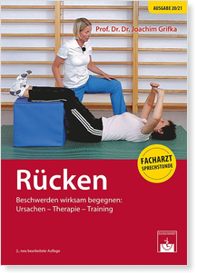 Auf dieser Webseite werden begleitend zu dem Buch "Rücken: Beschwerden wirksam begegnen: Ursachen, Therapie, Training" von Prof. Dr. med. Dr. J. Grifka Lehrstuhlinhaber für Orthopädie an der Universität Regensburg und dem Zuckschwerdt-Verlag (siehe Abbildung links) Videos bereitgestellt.